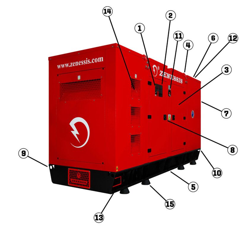 Realizata din tabla zincata, vopsita in camp electrostatic, insonorizata acustic, material ignifug. Este proiectata modular cu usi de acces in interior pe toate laturile generatorului. Toba de esapament este de tip rezidential, montata in interiorul carcasei. Carcasele sunt proiectate pentru a optimiza racirea ansamblului motor si alternator, putand fi montate in exterior, asigurand o protectie impotriva intemperiilor , si un nivel de zgomot redus. Vopsirea este realizata cu vopsea poliuretanica, cu protectie impotriva UV.